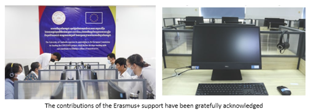 Establishment of the CONTESSA E-Learning Centre In order to facilitate blended learning and the development of on-line classes, part of the EU-backed Erasmus+ package was the setting up of an E-Learning Centre in each of the partner universities in Cambodia and Sri Lanka. This was based on the recommendations of a team from TUD after site-visits to review the needs, with the various items being purchased after the appropriate tendering procedures.